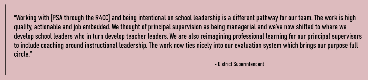 Customized Support tailored to meet the specific needs of your district, because each district has unique contexts. This includes helping districts reflect on their existing policies and practices; building capacity for districts to engage effectively in pipeline initiatives; and assisting in planning for continuous improvement for leadership development efforts.