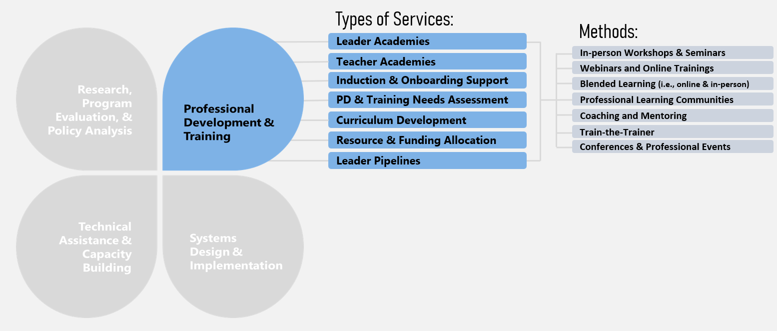 PSA collaborates with clients to co-create customized professional development and training that directly supports clients in achieving their goals. Our approach is grounded in research, informed by data, and leverages evidence-based practices to address the unique context of each program or organization. We ensure that each professional development or training session is high-quality, results-driven, and aligned to our client’s vision.