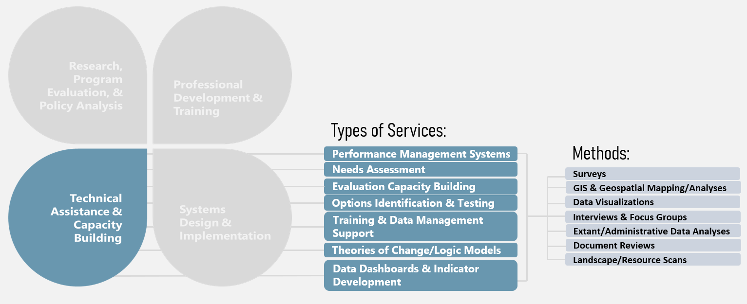 PSA is dedicated to strengthening organizations’ capacity to improve performance, particularly related to collecting and using data for program quality improvement. We support planning, leadership development, and infrastructure,. We also build organizational capacity for conducting needs assessments, trainings, data management, and tool reviews to boost operations. We seek to tie performance measures to key drivers of organizational improvement, including through theories of change.
